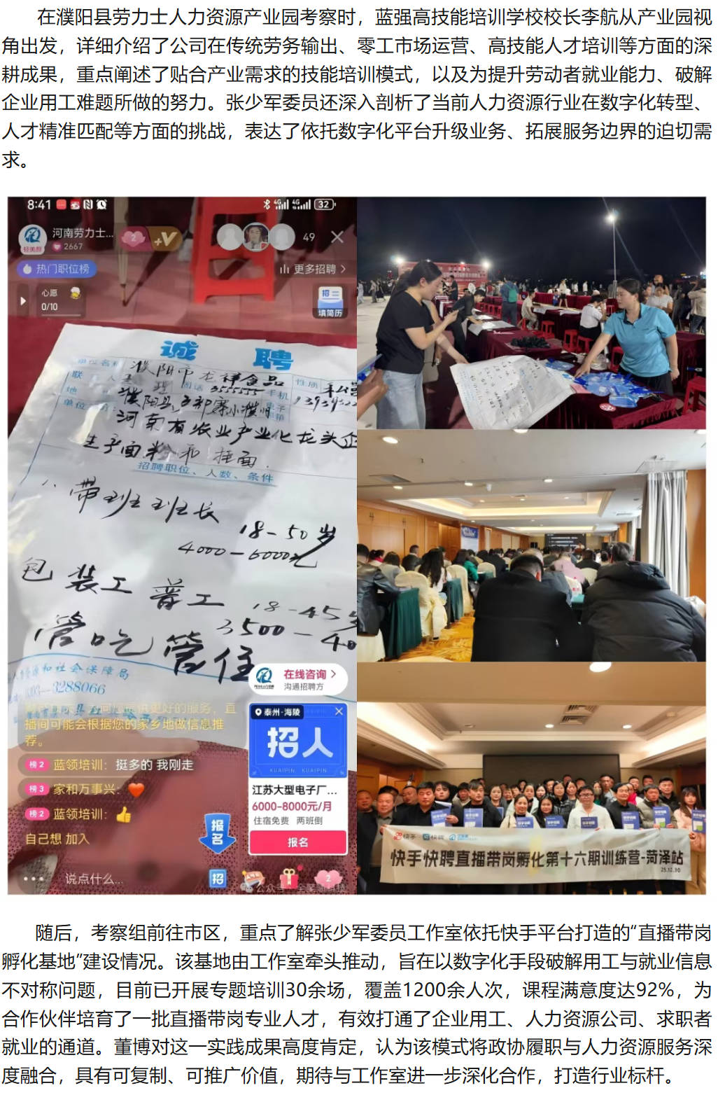 张少军委员工作室接待“快手快聘”考察 深化合作助力就业服务升级