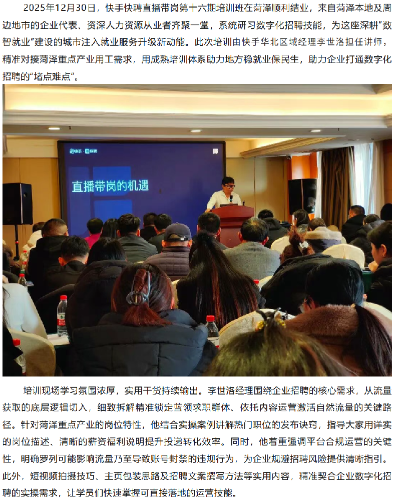 快手快聘直播带岗孵化训练营第十六期・菏泽站 顺利结业