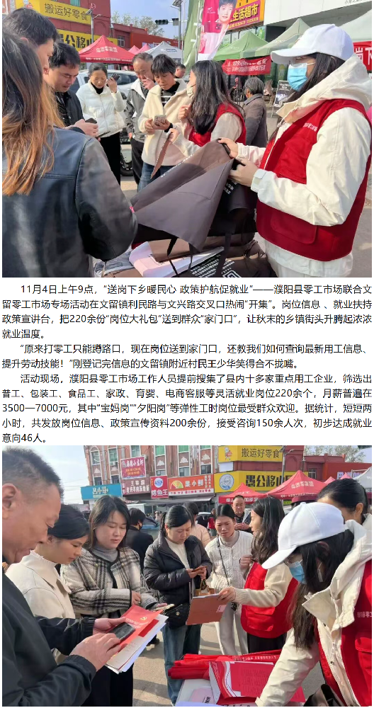 “送岗下乡暖民心 、政策护航促就业” 濮阳县零工市场与文留镇零工市场联合送岗下乡活动