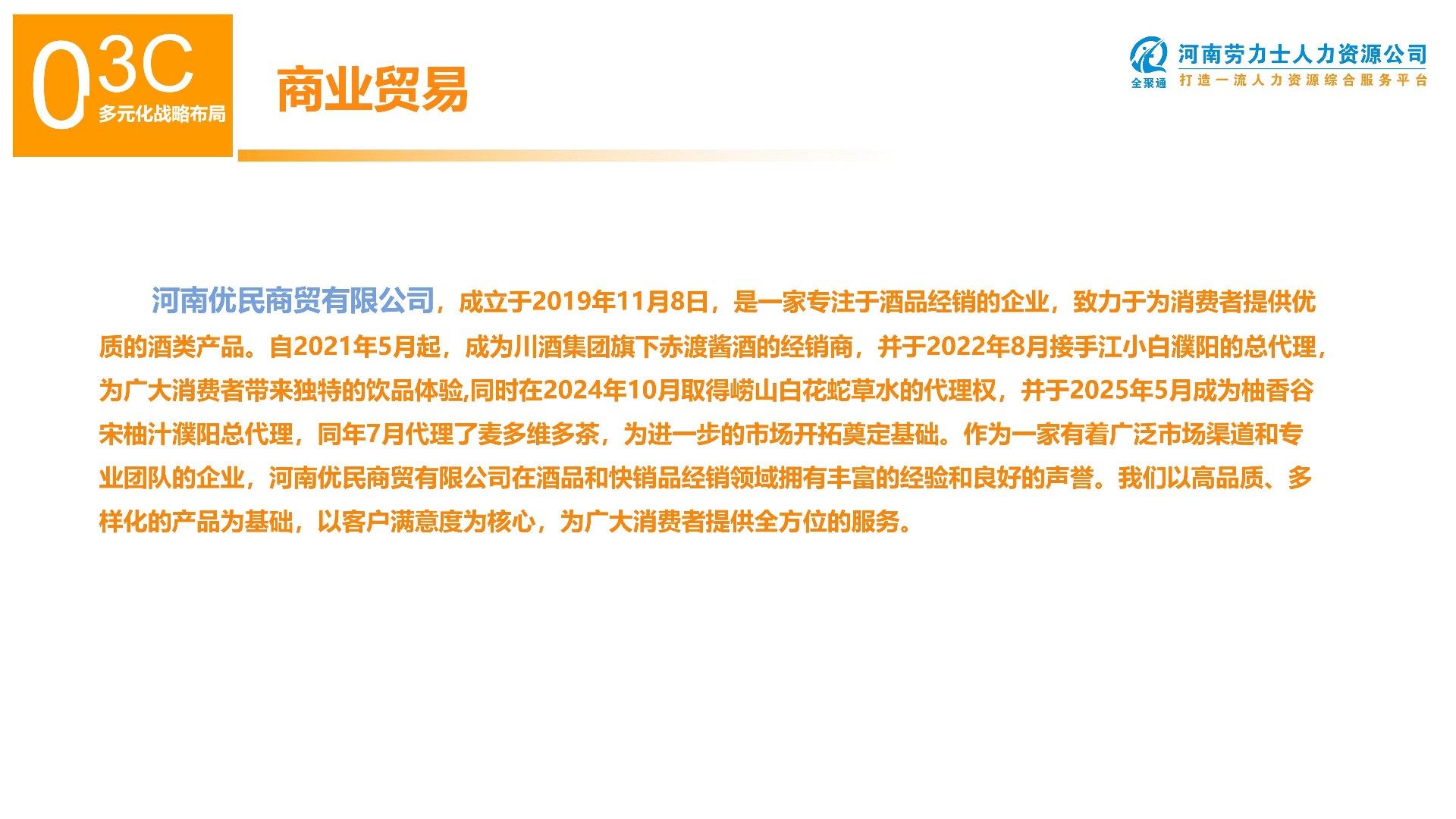 借助货币媒介实现商品流通,促进社会经济的发展, 满足人们生产生活需要,河南优民商贸有限公司秉承诚信 为本,客户至上的服务精神,力求成为专业的品牌代理, 客户首选的长期合作伙伴